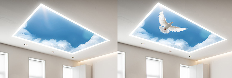 Двухуровневые натяжные потолки немного отличаются от других видов натяжных потолков особенно от монтажа. Следует отметить, что потолки на двух уровнях подходят только для просторных помещений, и не стоит устанавливать в небольших помещениях. При выборе формы потолка следует учитывать, что пленка изгибается от уровня к уровню. Что затрудняет созданию прямых углов поэтому они немного округлены. Двухуровневые натяжные потолки позволяют зонировать помещение и выронить его геометрию. Также можно использовать светодиодную подсветку.